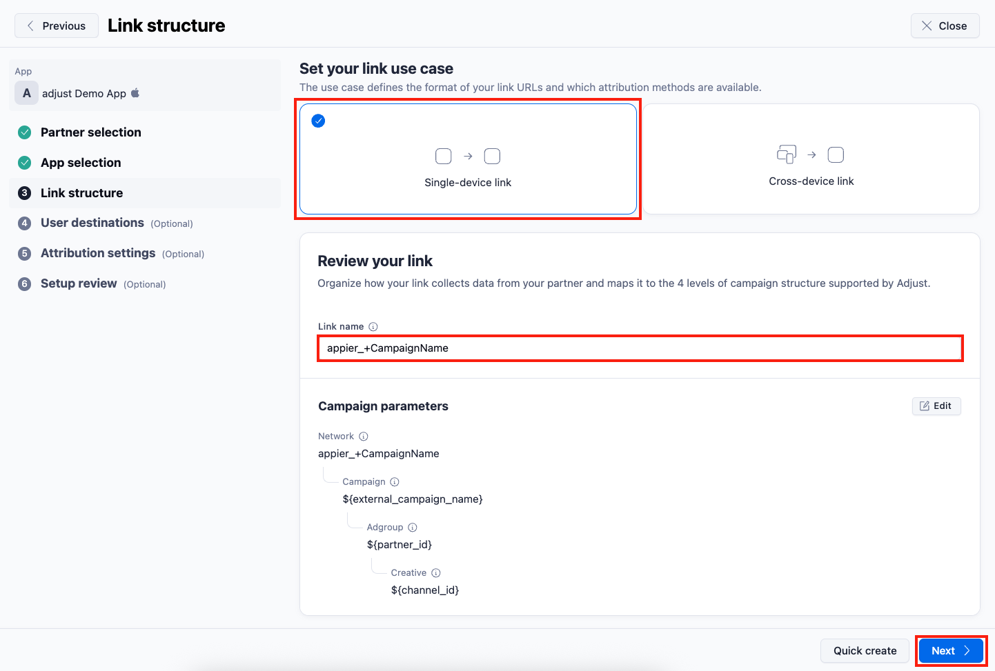 Choose "Single-device link" and name your tracker starting with 'appier_'+campaign name (suggest).