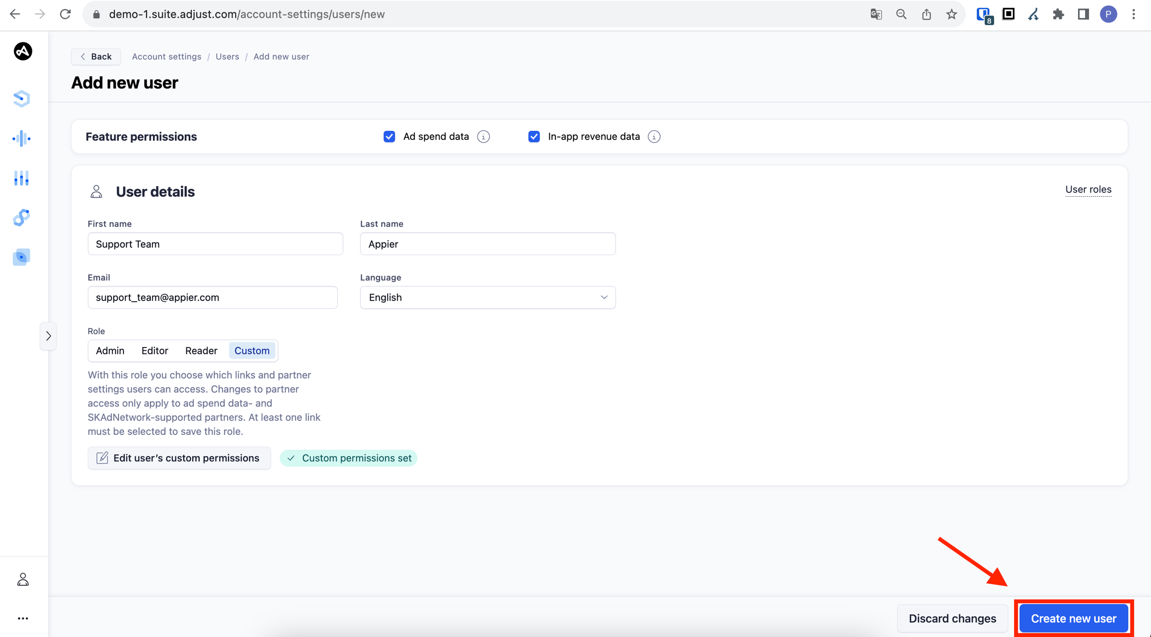 Finally, click the "Create new user" button in the bottom right.