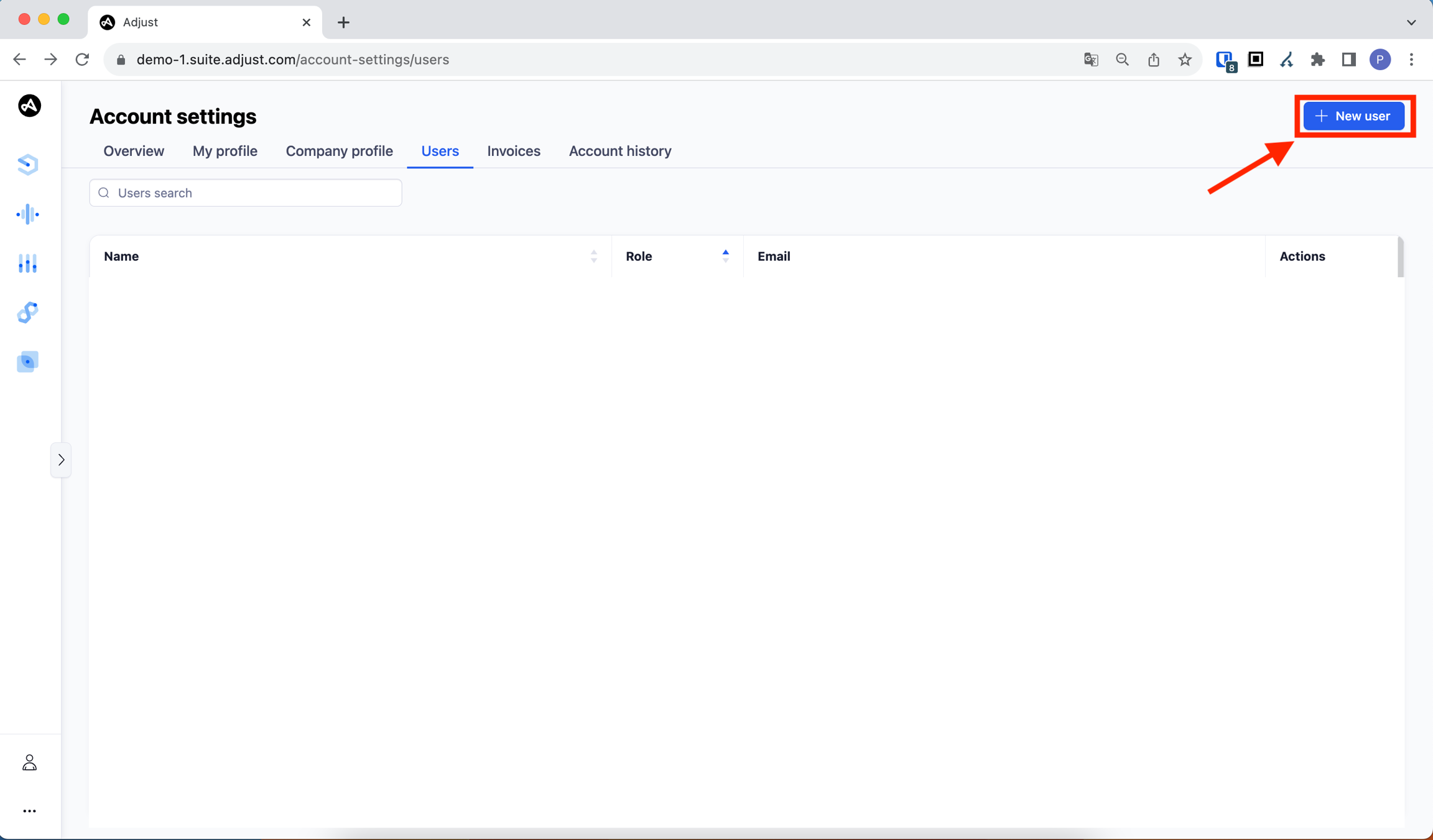 Click the "+ New user" button in the top right corner of the page.