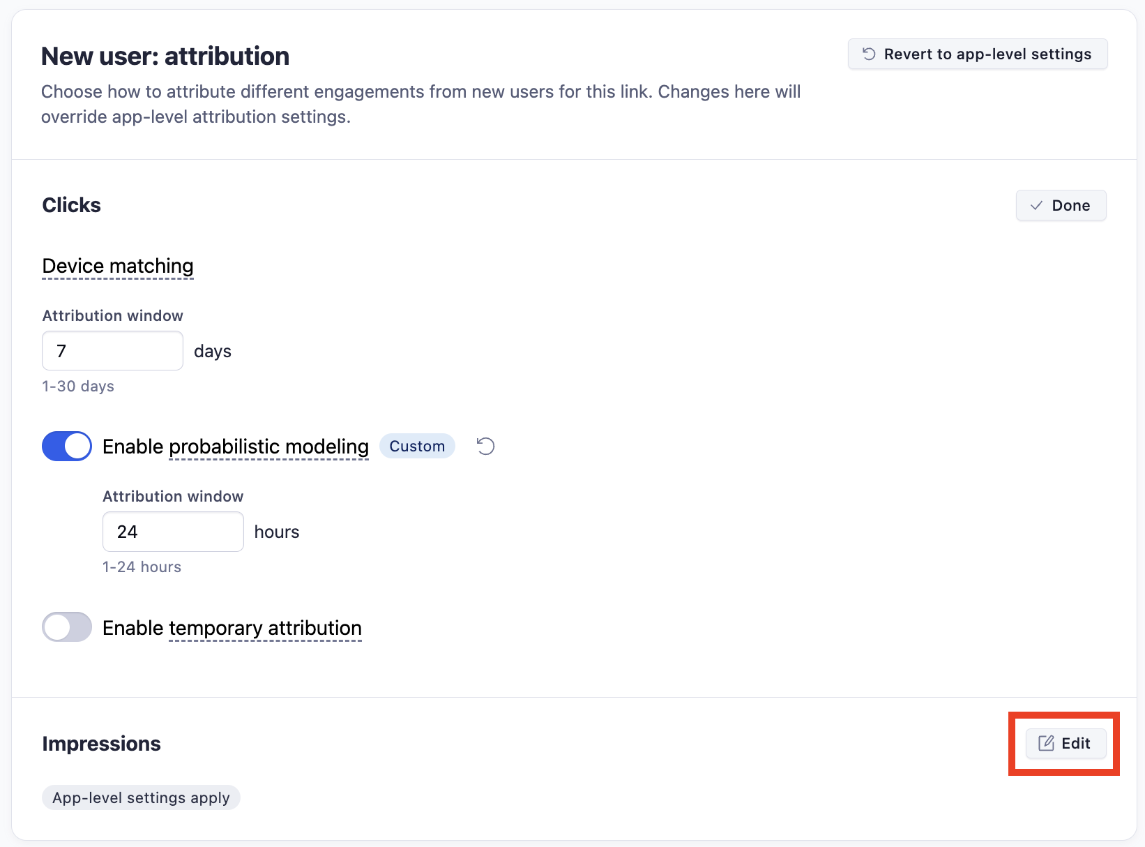 Existing user: reattribution - Impressions
