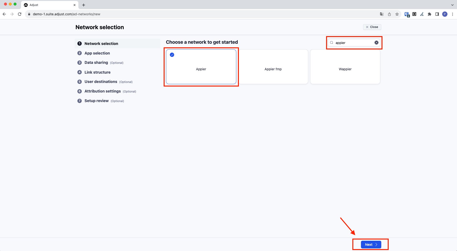 Search for "appier" in the search bar, select "Appier," and then press the "Next" button at the bottom right.