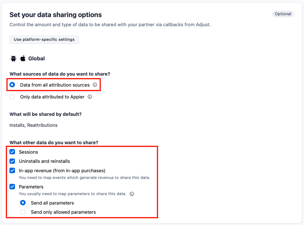 Please click "Use global settings" if both OS is going to run campaign.