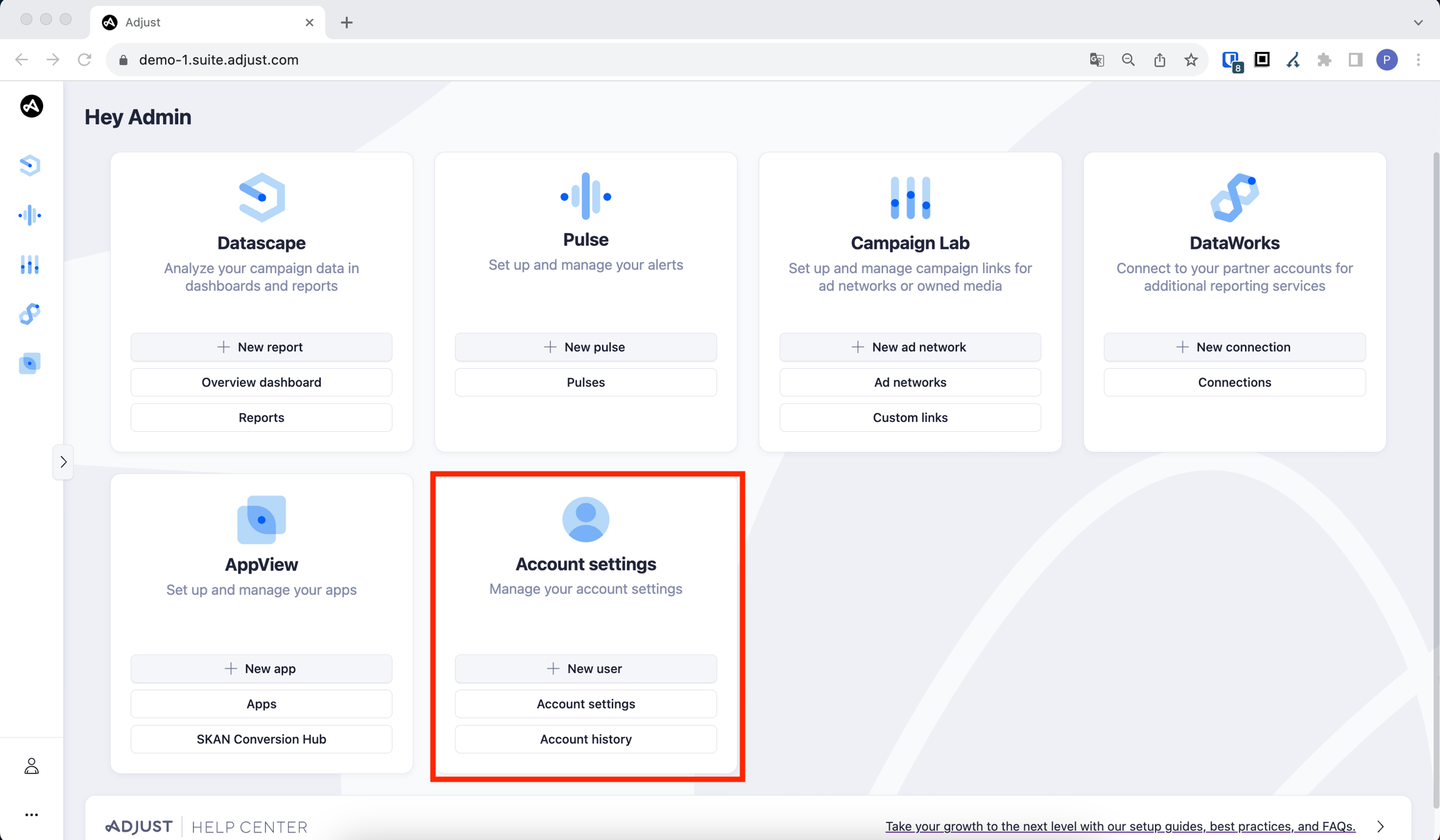 Return to the main page and click on "Account settings."