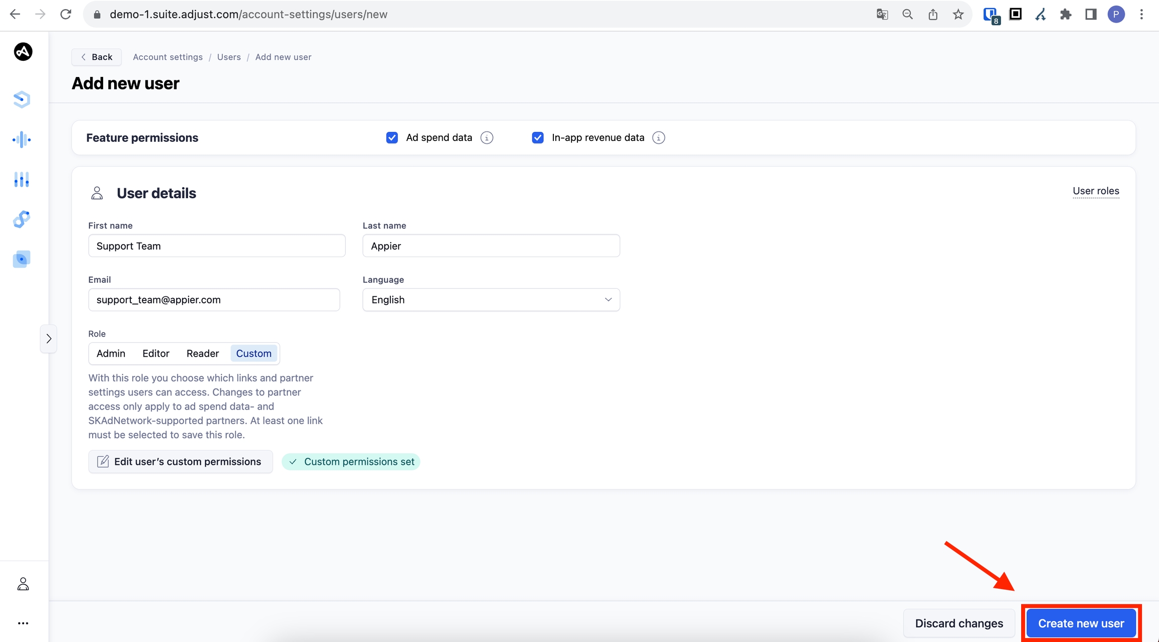 Appier の ACCESS ロールとして編集者を選択してください。可能な限り最高のオンボーディングおよびトラブルシューティング サービスを提供するために、Appier は編集者アクセスを要求します。ただし、このレベルを付与できない場合は、アクセス レベルとして READER を選択してください。