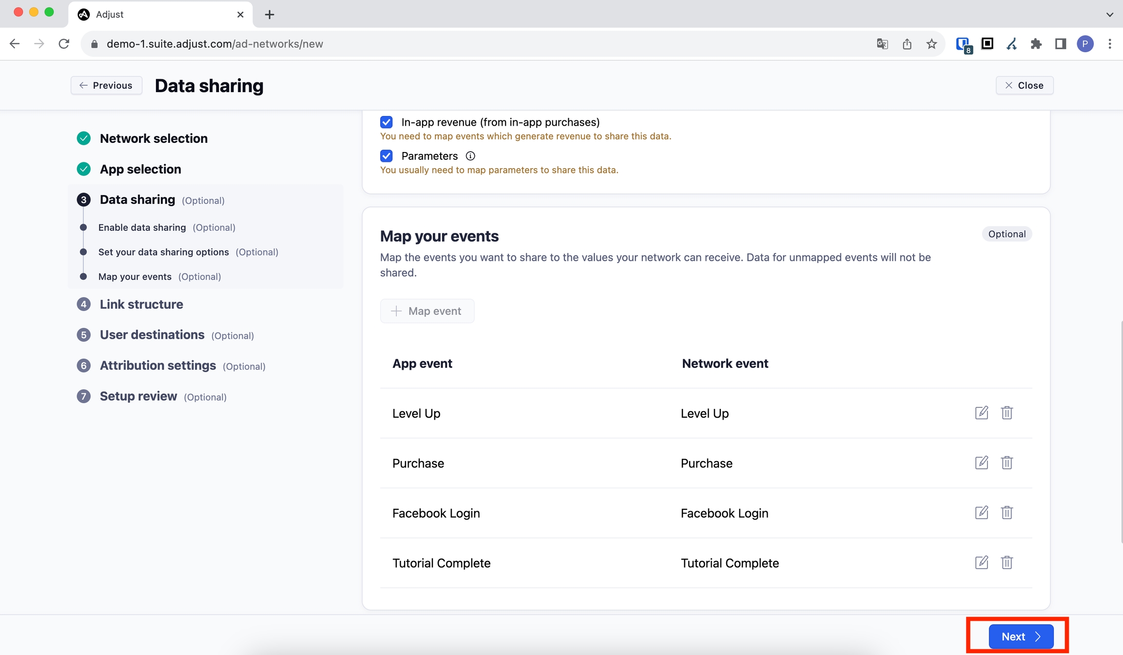 Afterward, scroll down and click the "Map all events" button to configure all events as shown.
