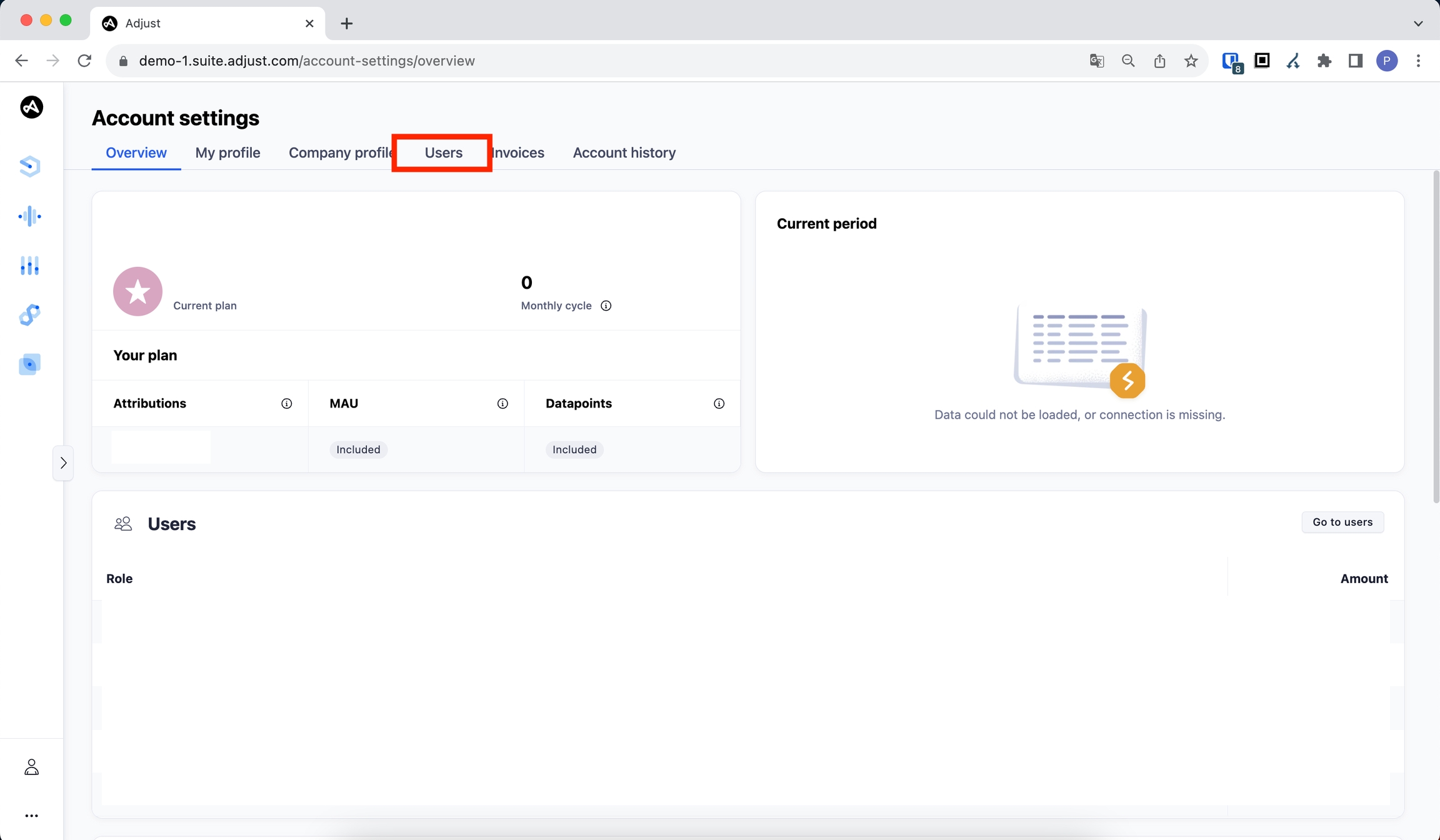 アカウント設定バナーの「ユーザー」をクリックします。