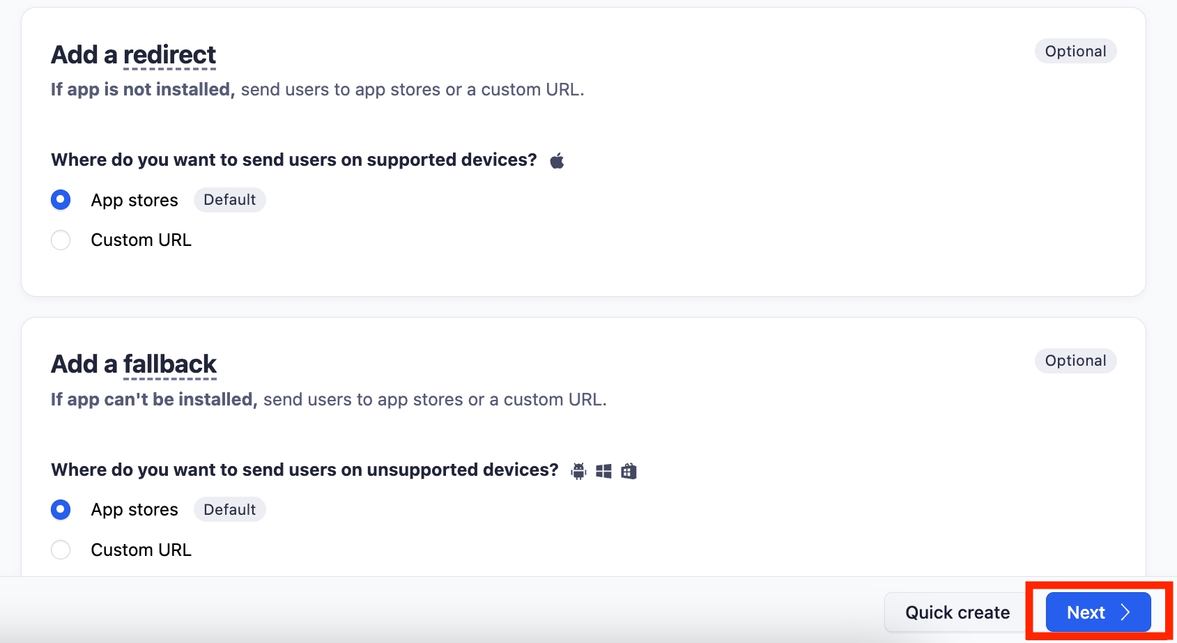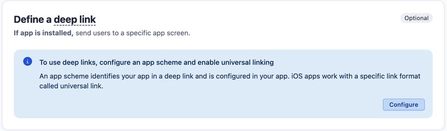 ディープリンクが設定されていない場合は、以下のスクリーンショットのように表示されます。この場合、開発者に問い合わせてディープリンクの有無を確認してください。存在しない場合は、このオプションを無視して次の手順に進んでください。