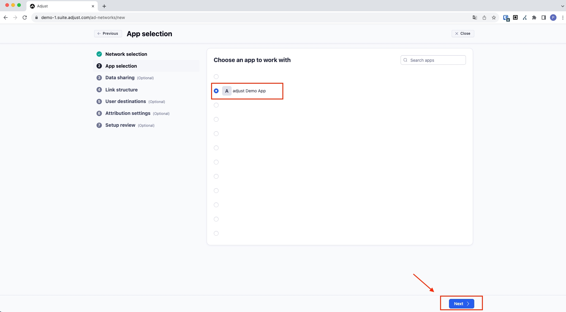 アプリを選択して「次へ」ボタンを押してください。