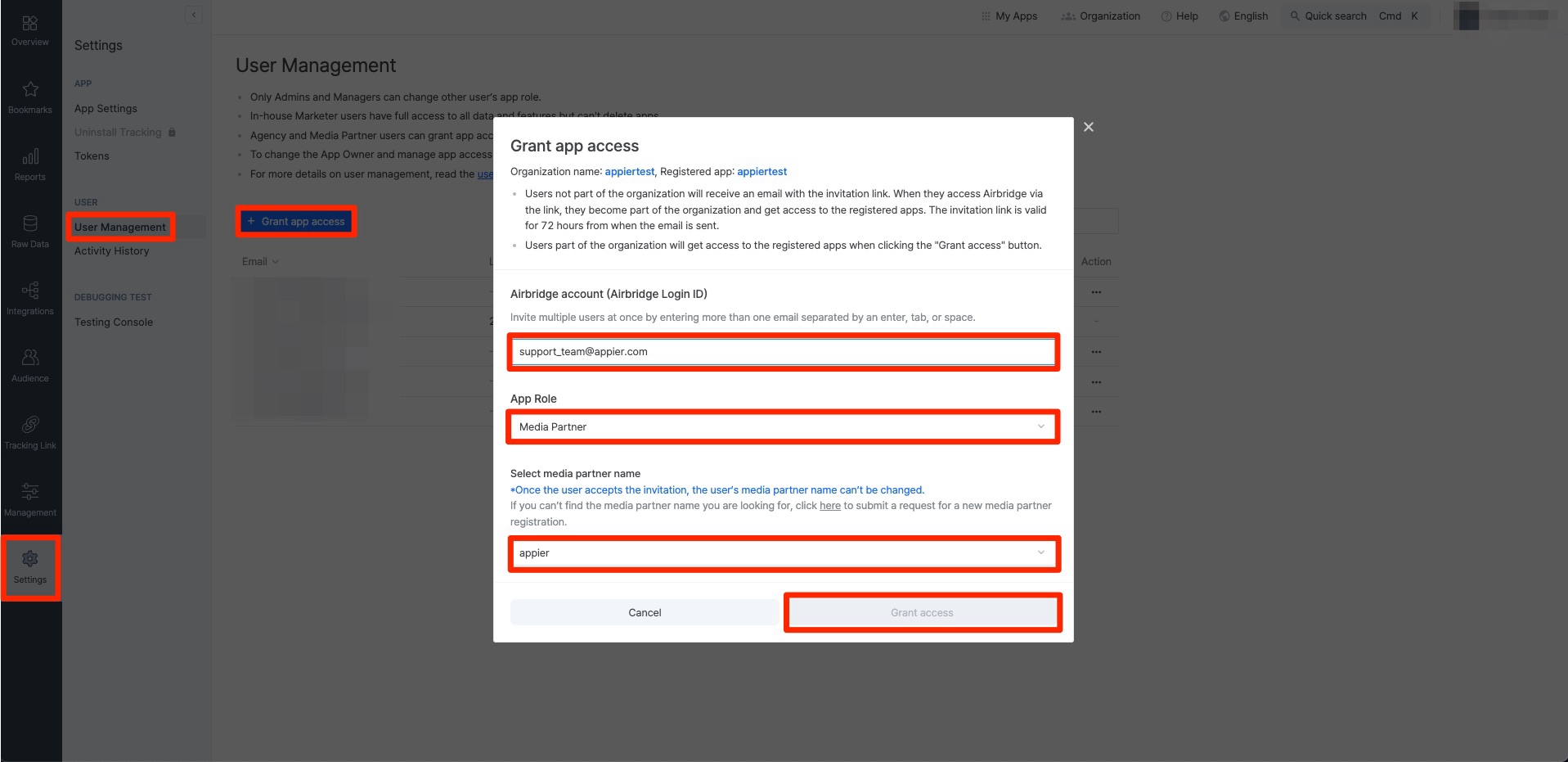 「メディアパートナー名を選択」で「appier」を検索して選択します。