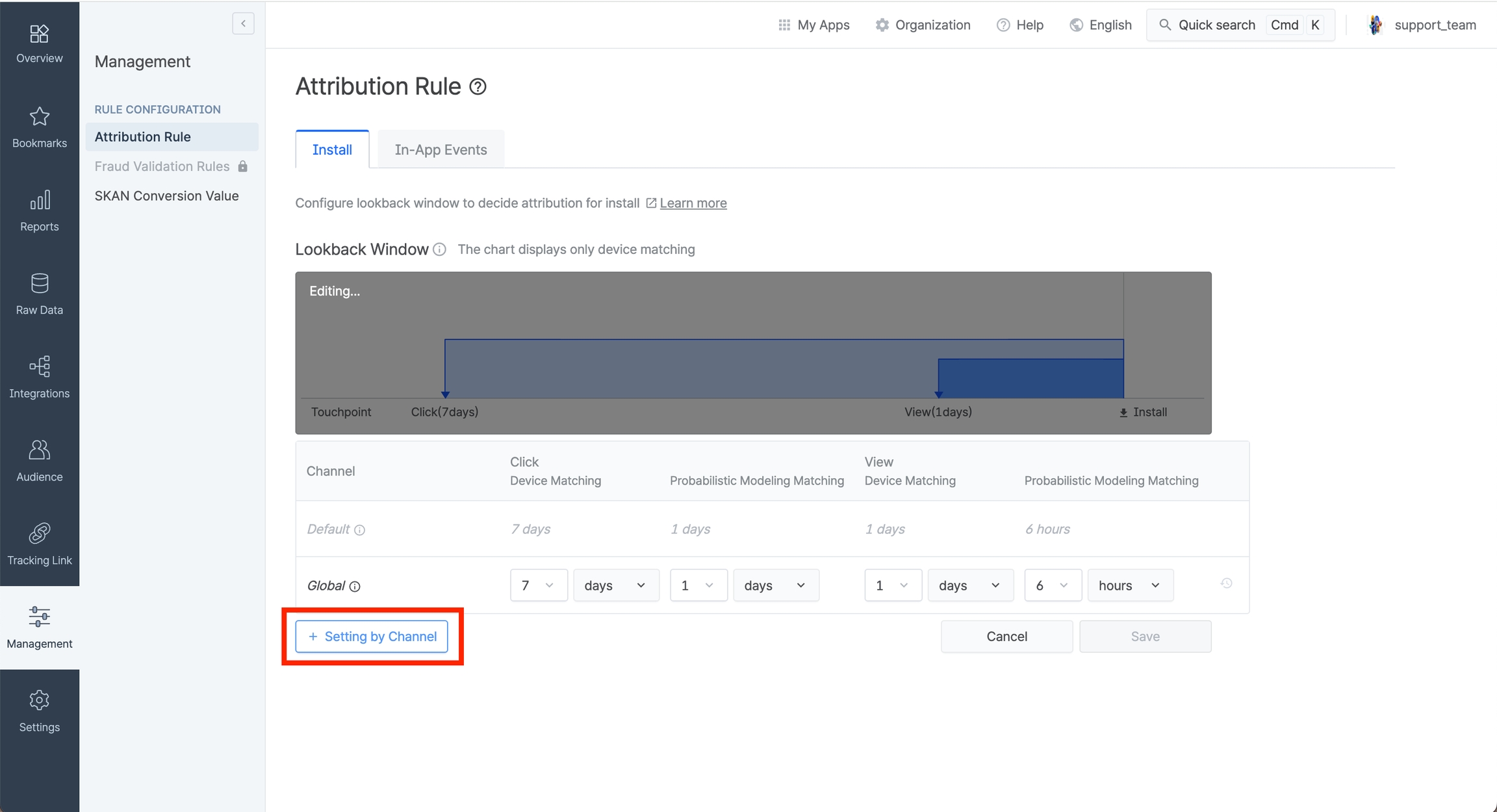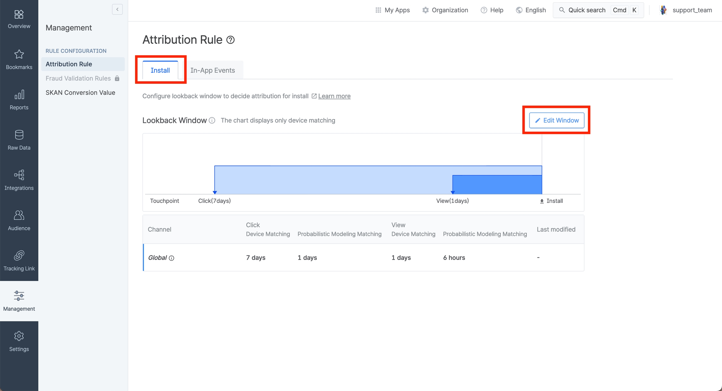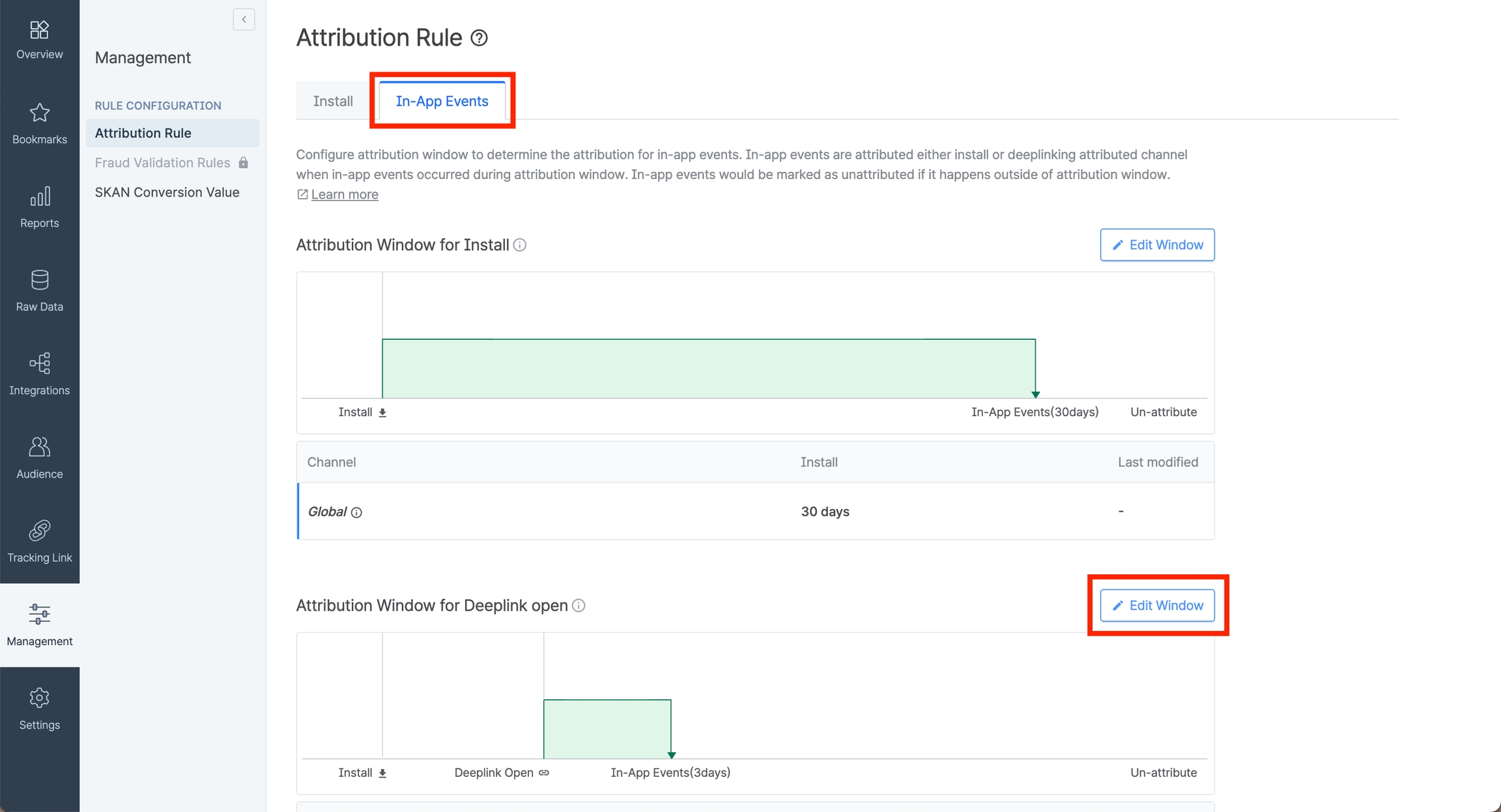[管理]へ移動 > 帰属ルール > アプリ内イベント]