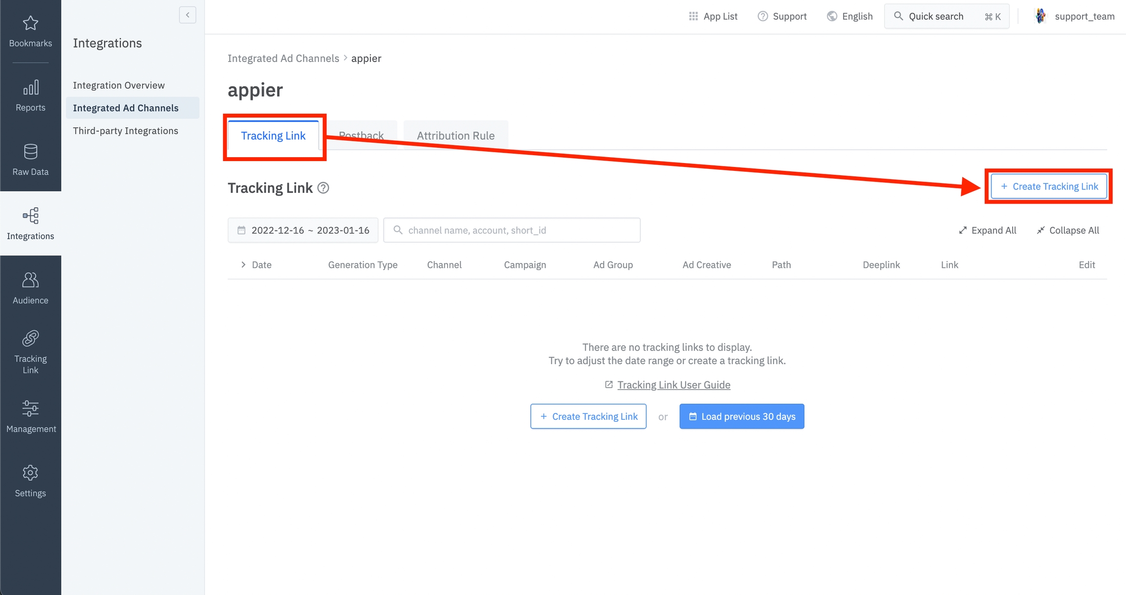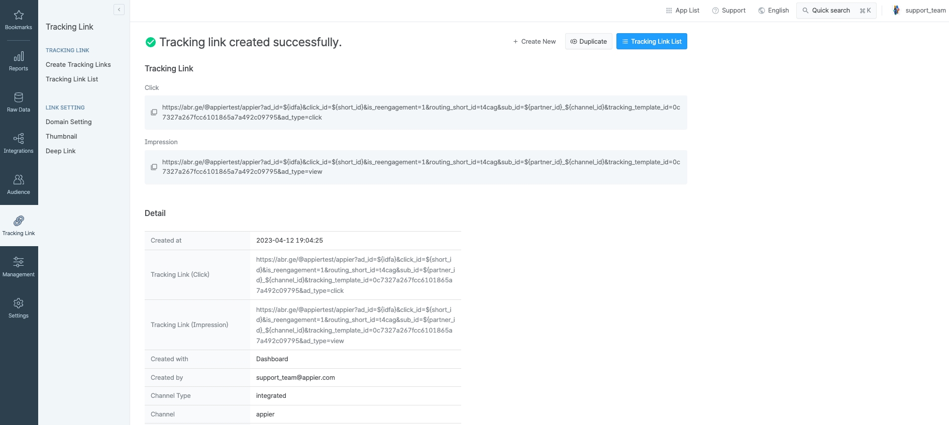 「クリック」リンクと「インプレッション」リンクをコピーして、Appier に提供します。