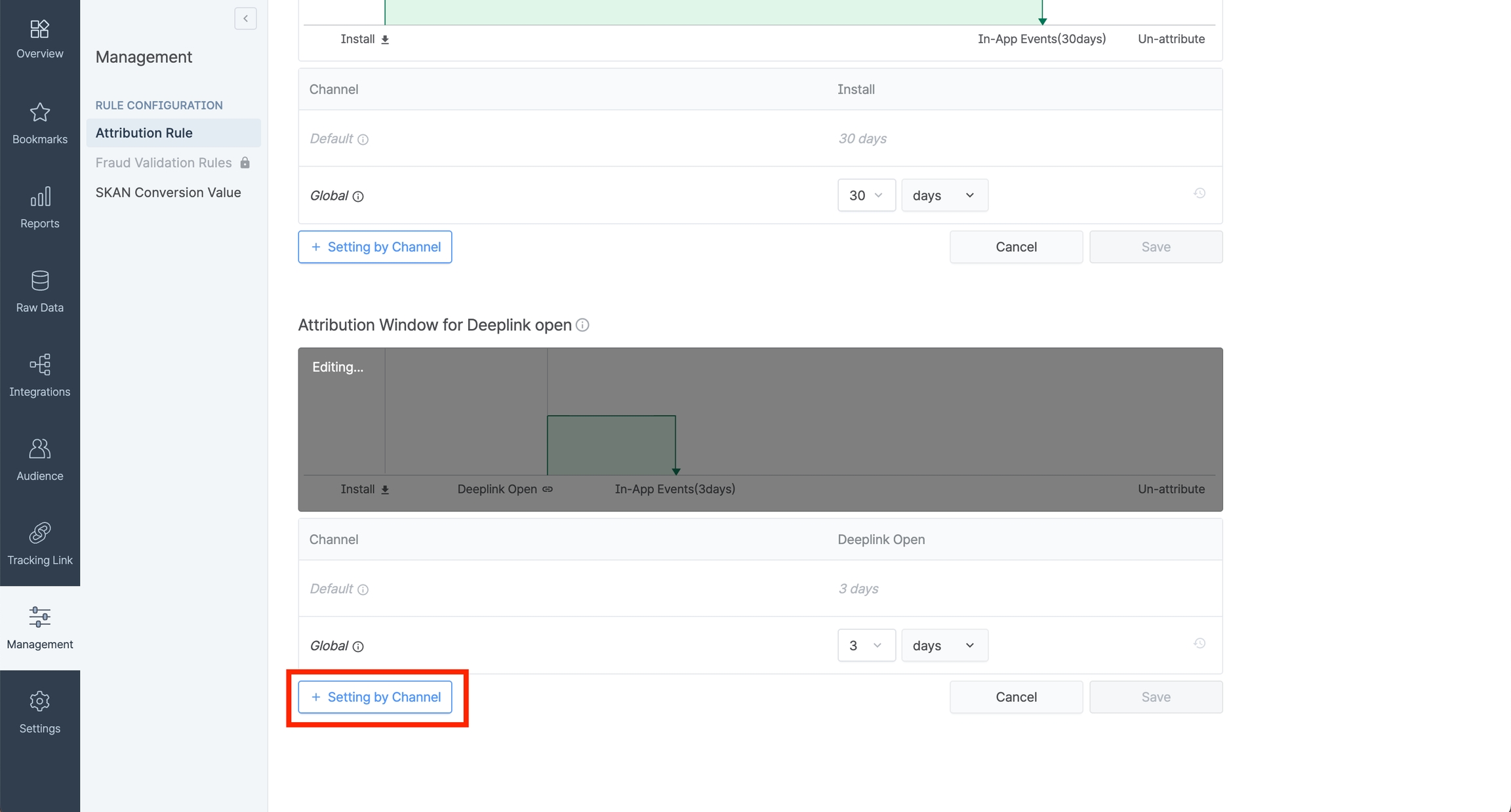 非アクティブウィンドウの設定は 必須 再活性化(再エンゲージメント/活性化)キャンペーン用。 この設定の詳細なガイダンスについては、Airbridge CSM(メール: [email protected]).