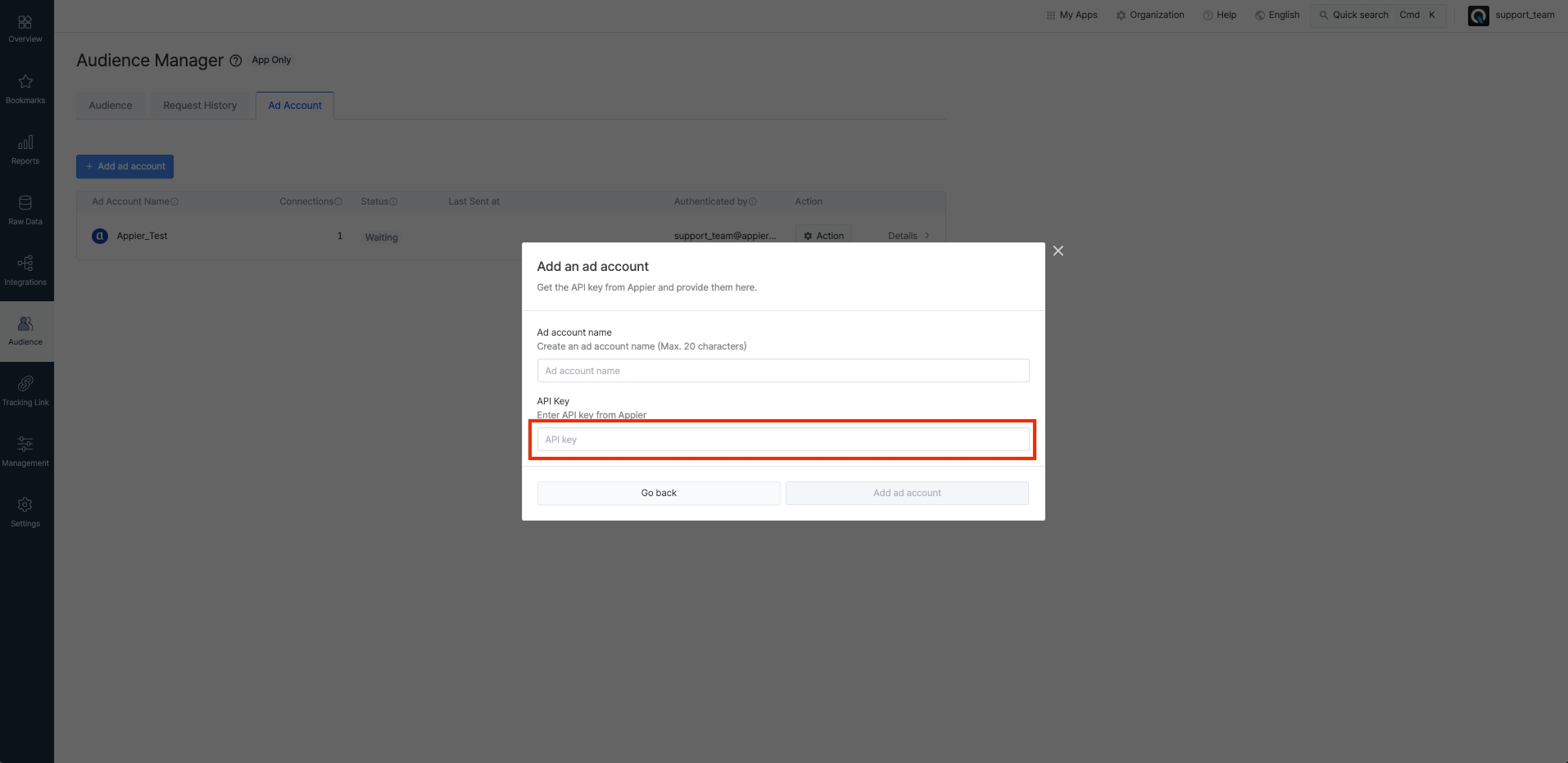 Airbridge で Appier に接続したい場合はお知らせください。API キーを提供します。
