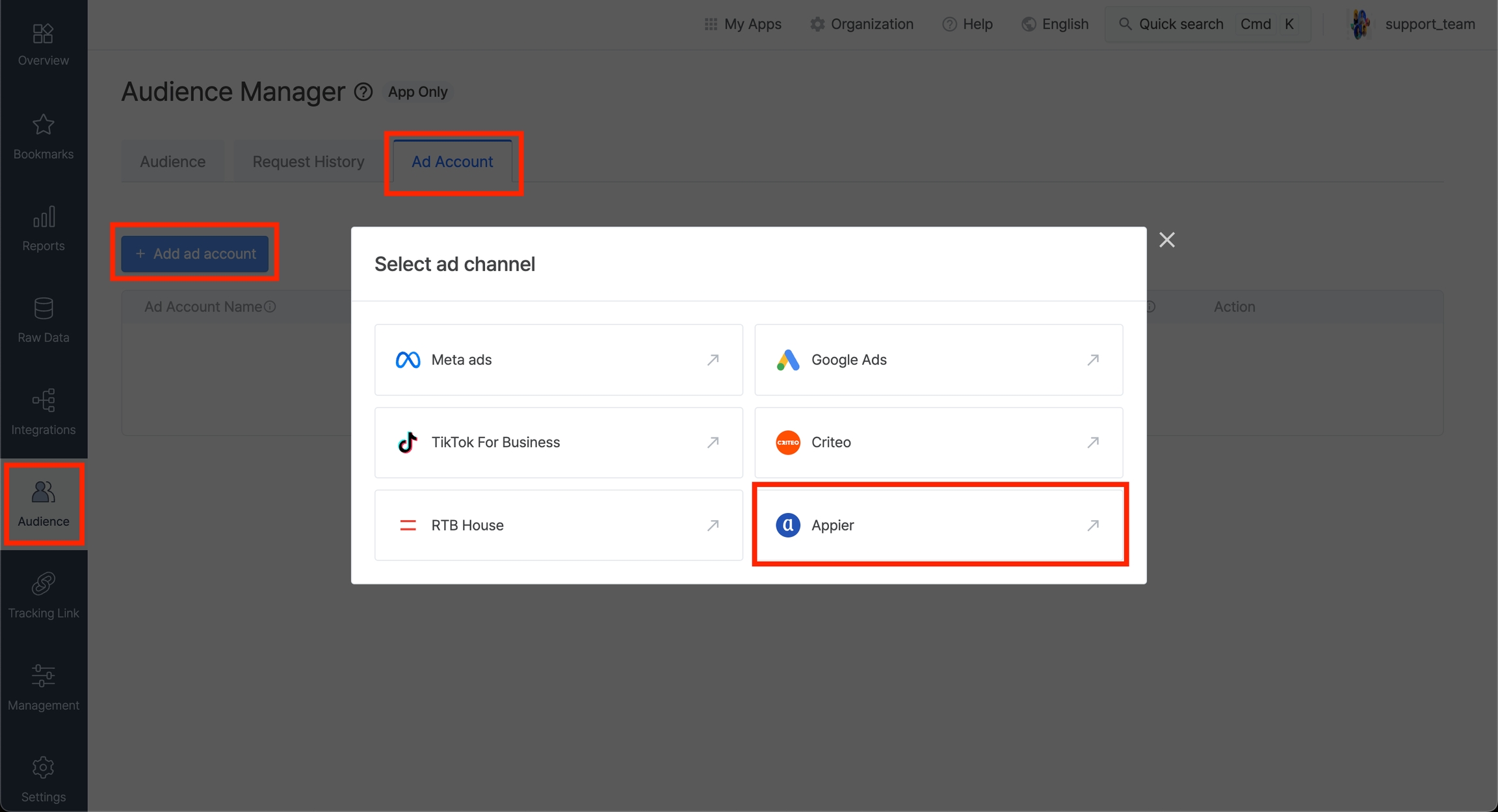 Appier をエアブリッジに接続する