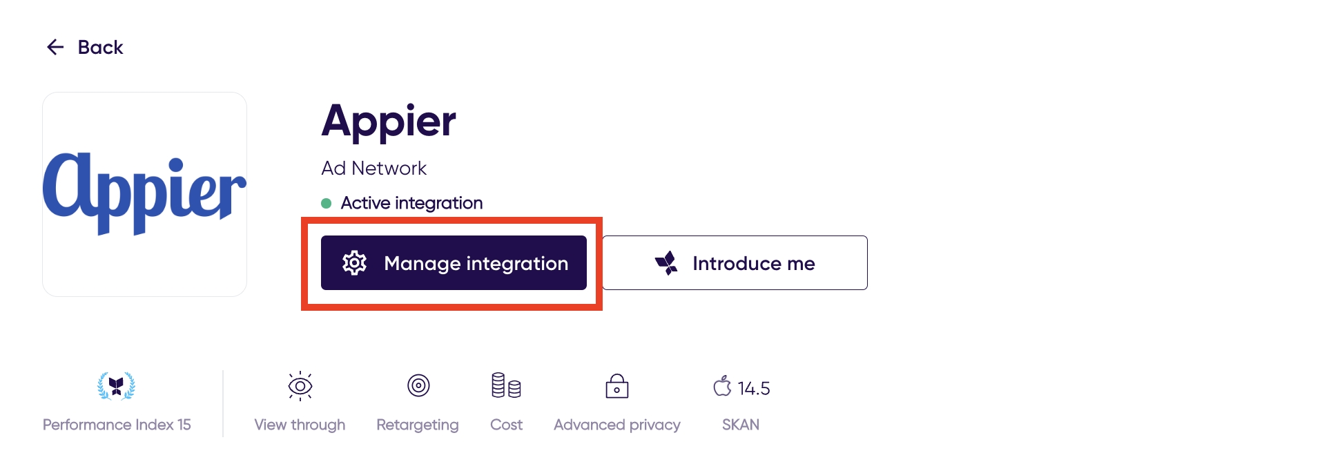非プログラマティック CPI キャンペーンの場合は、「Appier (ADNW)」を選択します。