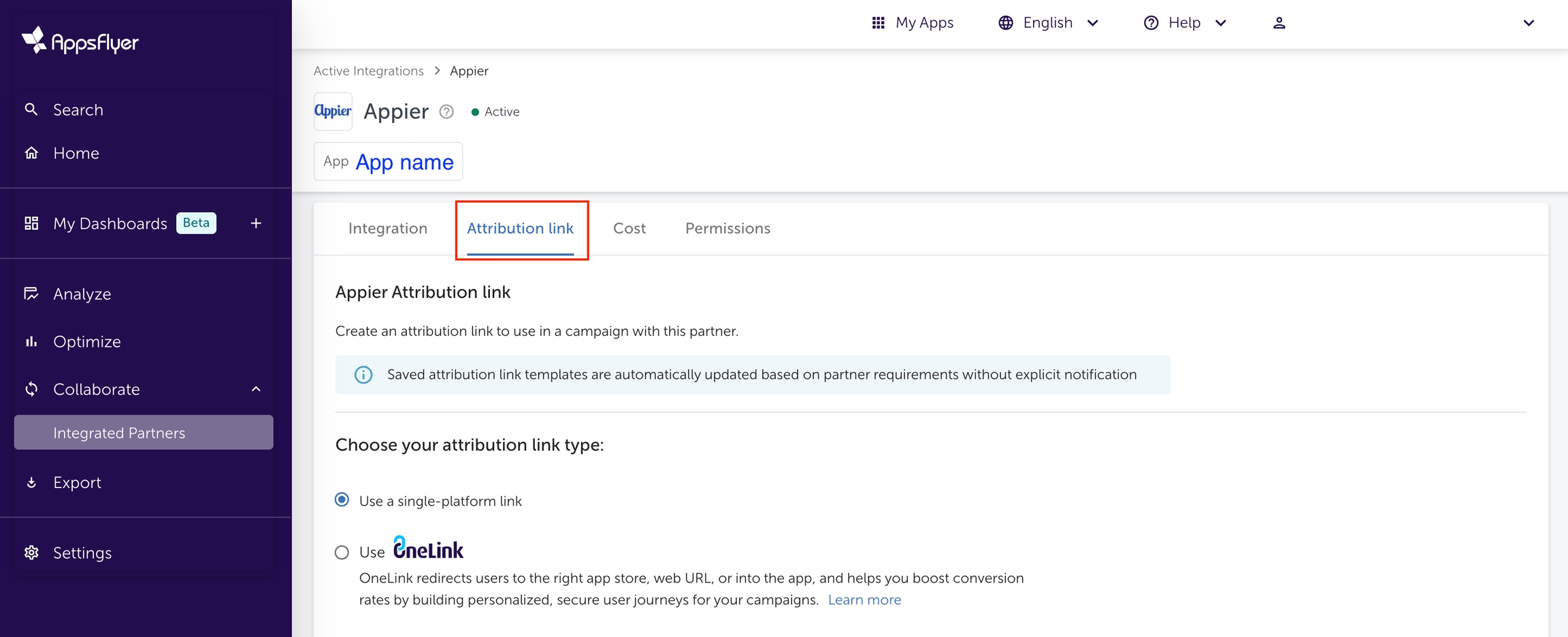 新規ユーザーキャンペーンの場合、このガイドに記載されている通りにAppsFlyerの標準リンクを生成してください。標準リンクでは、クリックアトリビューションリンクには app.appsflyer.com 、インプレッションアトリビューションリンクには impression.appsflyer.com のURLドメインを使用します。キャンペーン用にOneLinkを生成しないでください。キャンペーンでOneLinkが必要な場合は、Appierに相談してください。