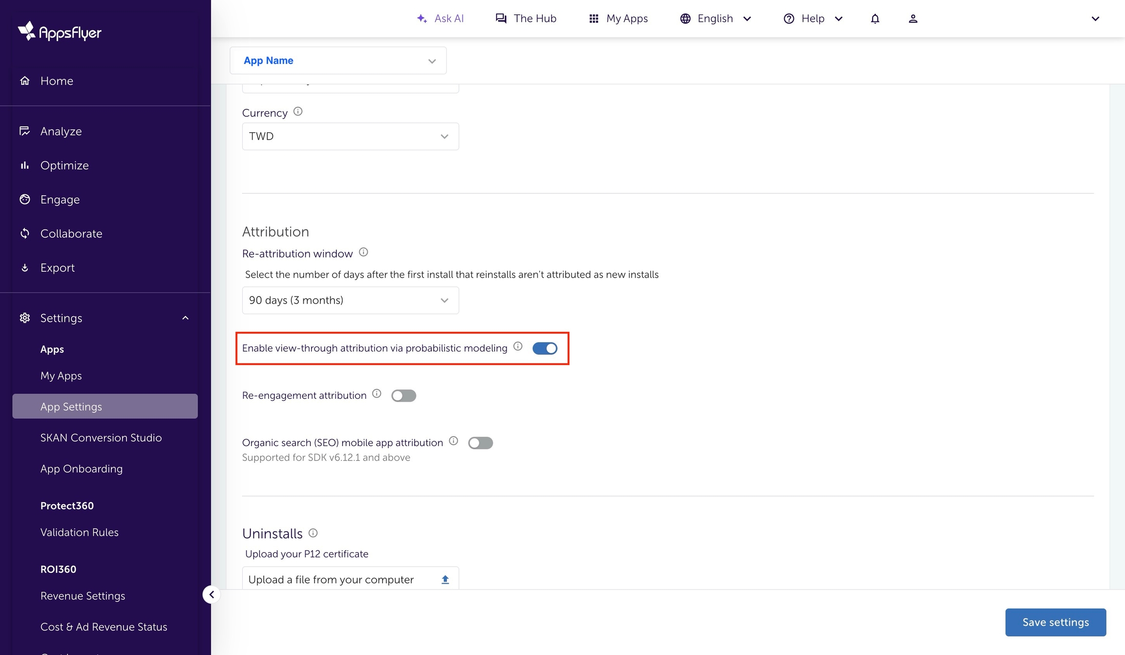 Appsflyer ガイドラインにおいても、広告主に対し、確率論的モデリングでのビュースルー計測の有効化が推奨されています。