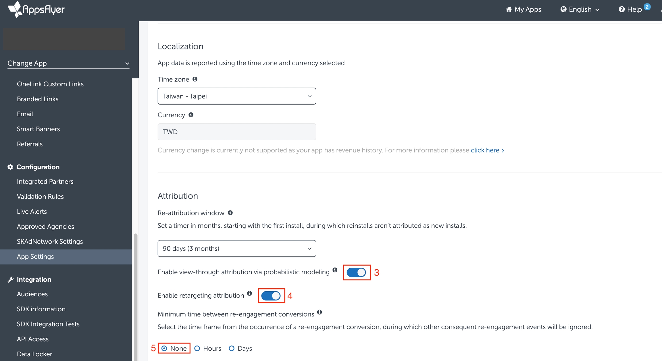 リエンゲージメントコンバージョン再計測までの最低時間を「None」に設定してください。