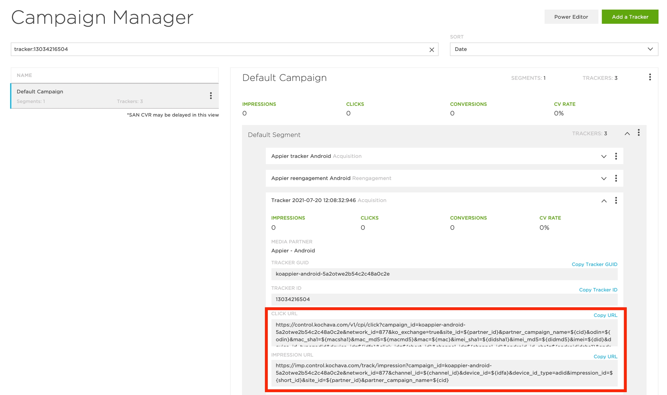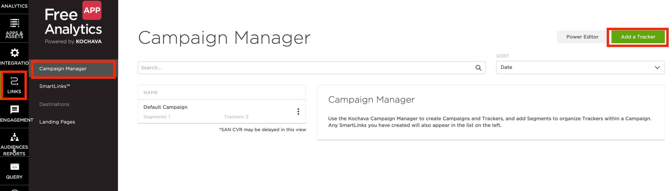 Go to "LINKS" > "Campaign Manager" and click "Add a Tracker".