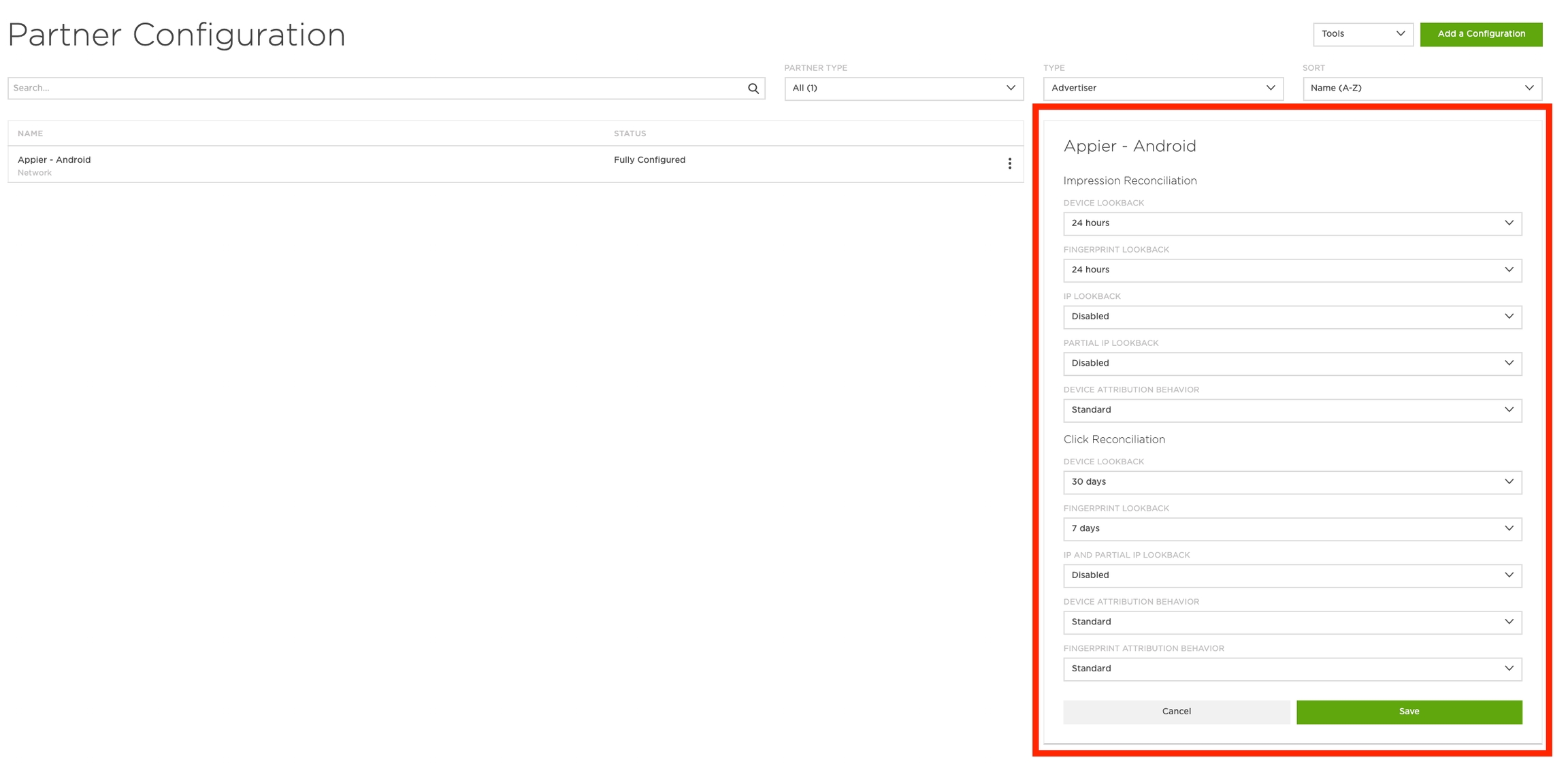 In the reconciliation menu, please set the attribution windows. If your changes are different from the default values, please let Appier know.