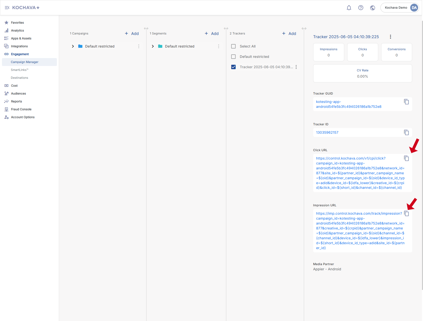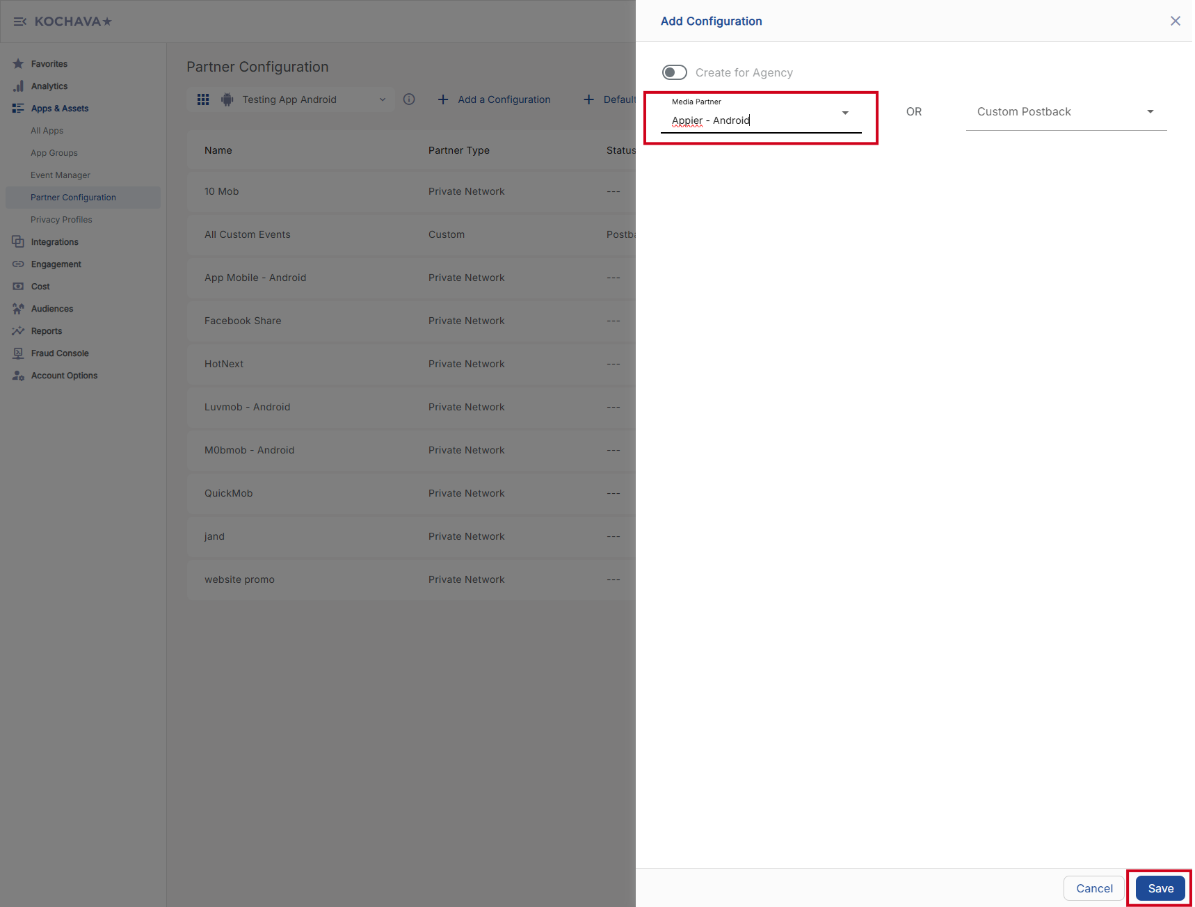 Select a Media Partner as "Appier - Android" or "Appier- iOS", depending on the platform that the campaign is targeting.