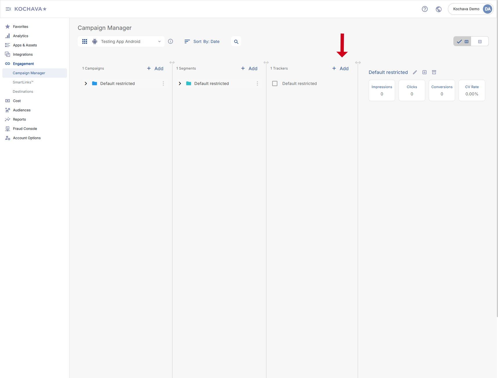 Go to "Engagement" > "Campaign Manager" and click "Add a Tracker".