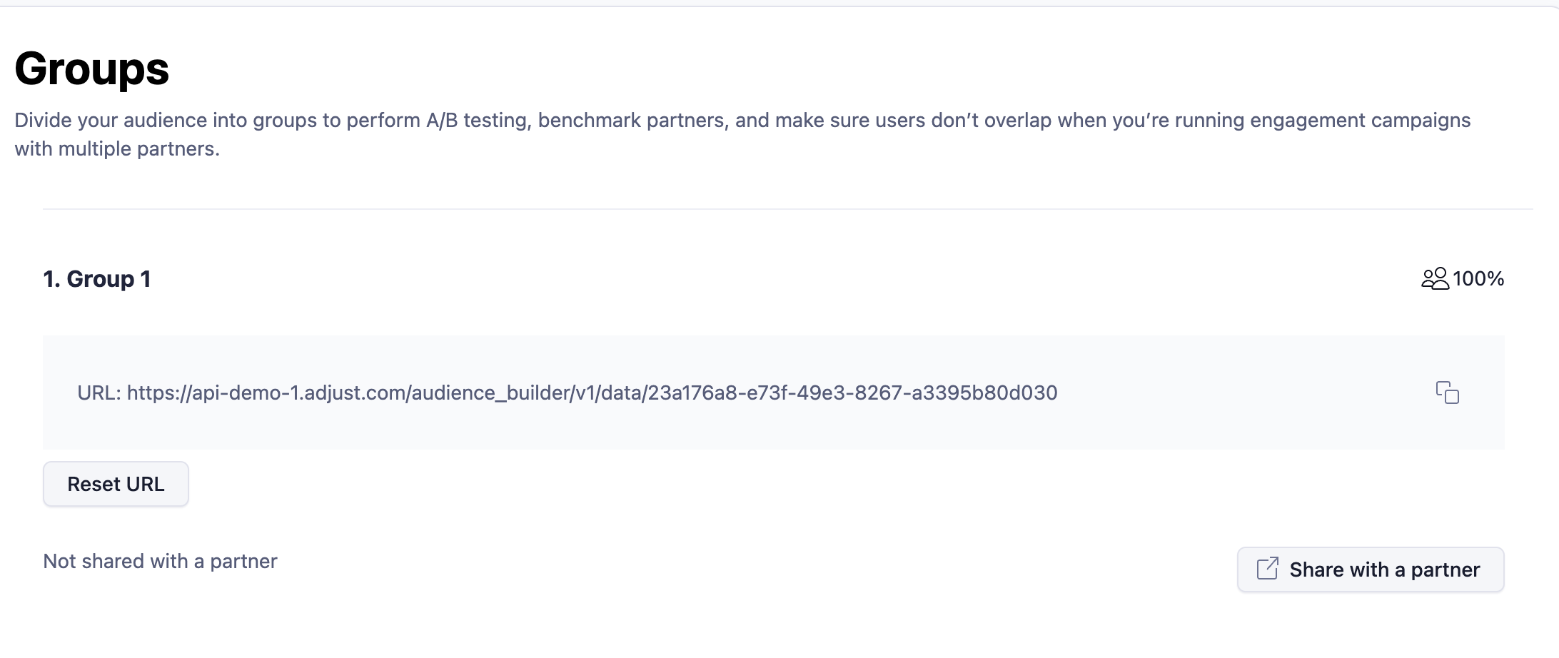 Adjust Audiences에 대한 최신 공식 가이드는 Adjust 공식 문서를 참고하시기 바랍니다.&#x20;