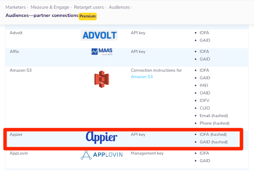 #### 3. Appier를 Audience 파트너로 추가합니다.
